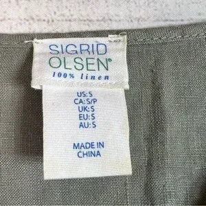 Sigrid Olsen Green Short Sleeve V-Neck Tunic Blouse Linen Lagenlook Size S