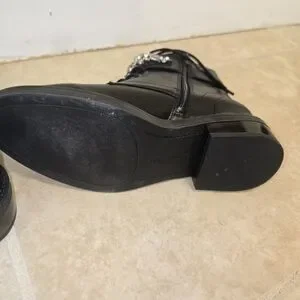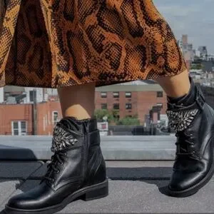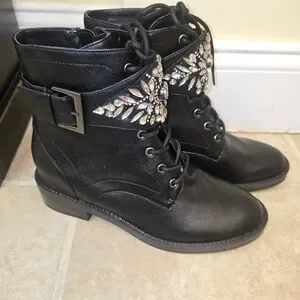 Elevate your look with these Nine West combat boots. Sleek black design with striking studded accents. Perfect for a bold statement.