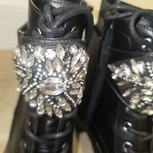 Nine West Rhinestone Embellished Ankle Black Boot Size 7 M