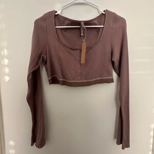 Women's Long Sleeve Crop Top - Brown