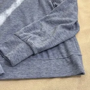 Stylish blue pullover with a brushed texture. Ideal for everyday comfort. Cozy and chic with adorable puff sleeves and a banded bottom. 90% polyester, 5% rayon and 5% spandex. 22 inches from armpit to armpit and 23 inches from shoulder to hem.
