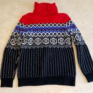 🤩WOW!🤩 I am SO impressed at the quality of this sweater!!! 100% Merino wool (hard to find sweaters like this!) is warm and thick, but not too thick with a classic Nordic design and vibrant colors. Makes you feel like having a cup of coco on a powder day in the ski lodge. I really am mouning that this sweater is too small for me 😞.
