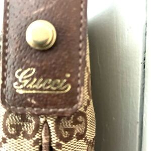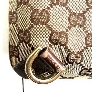 Preloved & preworn Gucci shoulder bag with iconic monogram pattern. Perfect size bag (12x12) pls note wear & tear in close ups. Zipper no longer works but still has life left in it