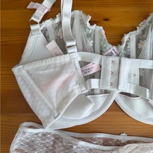 Victorias secret dream angels Floral daisy push up without padding bra thong NWT