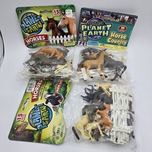 Lot of 3 packages of toy horses, please view photos. Some interior of packaging is a little dirty, been in storage