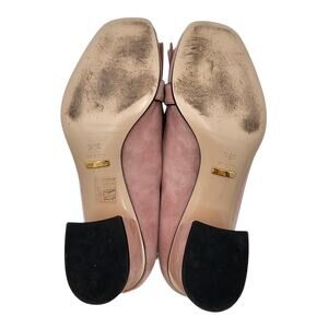 Gucci GG Marmont Fringe Block Heel Pump Pink Suede Square Toe Size 38.5 US 8.5