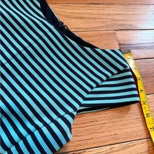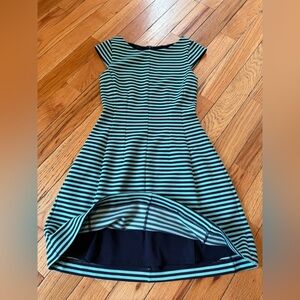 Lilly Pulitzer women’s fit and flare textured Brielle dress, size small. Navy blue/turquoise striped. EUC. No rips, holes, stains or odors. Please see photos for item details/dimensions. Some photos may appear different in color due to lighting. Ships from smoke-free home.