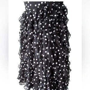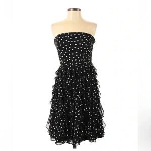 White House Black Market |Strapless Black & White PolkaDot Ruffled Dress Size 00