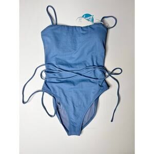 WET Venice Foster Lace-Up One Piece Swimsuit U-Neck Slate Blue Women's Small