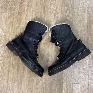 Dr. Martens Aimilita Fur Lined Leather High Fold Over Combat Boots size 8
