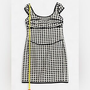 Cocktail knee length dress in a black / grey / white checkered pattern design