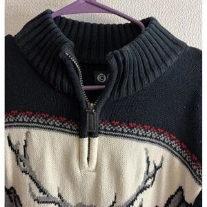 CHAPS Knit Sweater Winter Elk Mountains 1/4 Zip Sz XLGrandpa Core Cabin