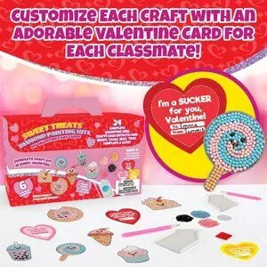 Sweet Treats Valentine's Day Cards Diamond Paint by Number Craft Set - 24 Pack. V-day cards and craft activities for the whole classroom!