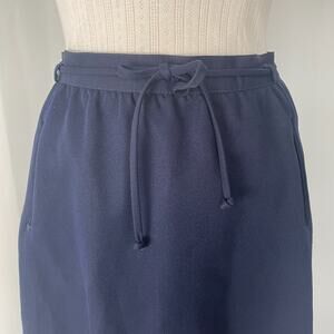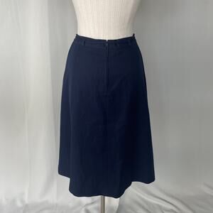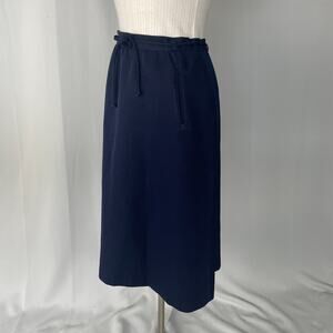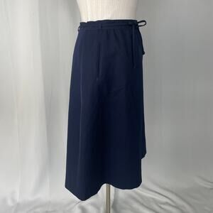 Vintage A Line Midi Skirt Size 14 Navy Blue Belted High Rise Retro Preppy 80s