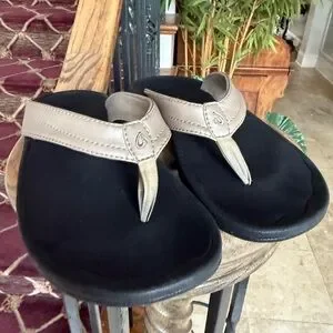 Ola Kai, ladies, size 8, gold and black flip-flop sandal good condition.