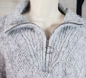 BKE Grey Quarter Zip Mock Neck Eyelash Sweater size Xtra Small