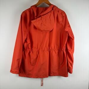 Bright orange utility jacket with hood. Features front pockets and drawstring waist by Boston Proper. Size small and in overall great condition.