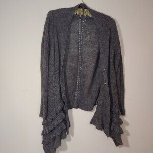 Kial Wool Blend Snap Buttons Ruffles Long Sleeves Knit Cardigan Sz L/XL Grey