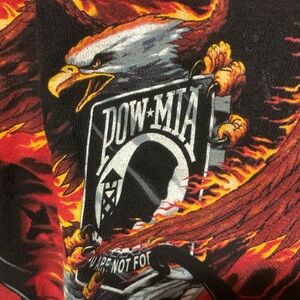 Y2K POW MIA Never Forget Biker Shirt Eagle & Flames Graphic Long Sleeve Medium