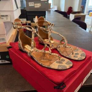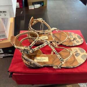 Valentino Garavani Thong Sandals, Snakeskin Print, Women's Size 5 — Made in Italy.
