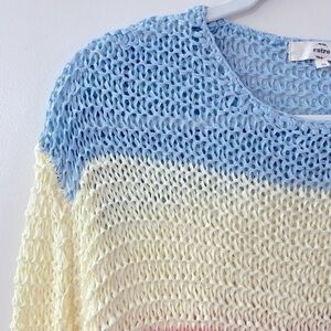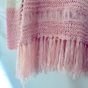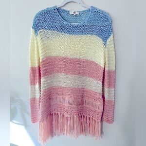 ENTRO Pastel Striped Knit Sweater w/ Fringe Size Medium