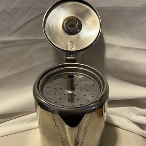 Older. 1980s-1990s. Stainless steel , mini. 3 cup , percolator style coffee