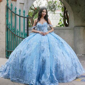 New Powder Blue Sequins Embellished Long Quinceanera Gown w/ Back Bow JT1510H