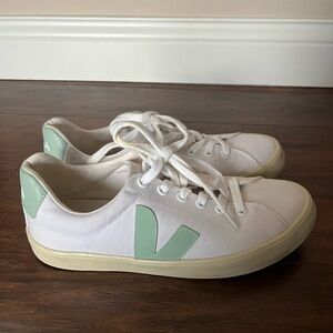 Canvas Veja Esplar White and Green Sneakers-Size 6