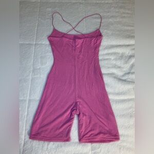 Stylish pink jumpsuit with spaghetti straps. Perfect for casual outings. In great used condition, only flaw a tiny hole near the armpit area, please see last picture for details.