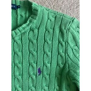 Vintage Ralph Lauren Y2K Women's Kelly Green Cable Knit Cotton Sweater Logo- S