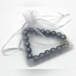 -Classic Retro Feminine Preppy Party Boho-chic Gray Pearl/Silver Bracelet with a Rhinestone Bling Sparkle Center