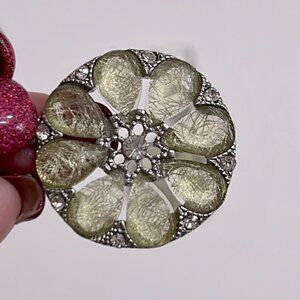 Silver dangle earrings with off-white, translucent stones.
