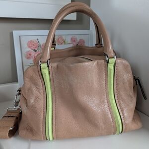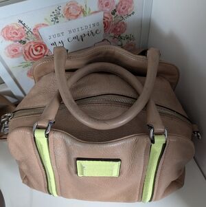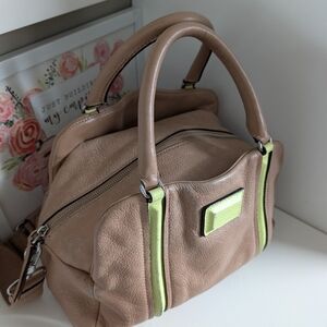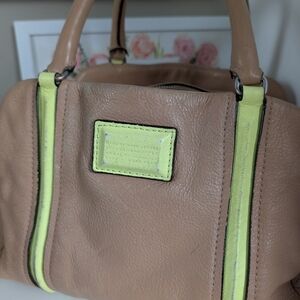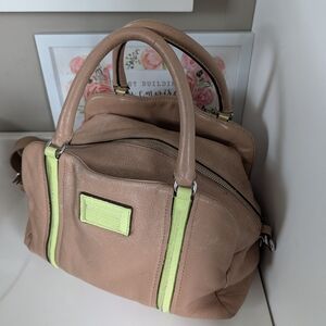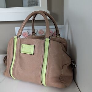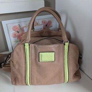 This Lovely, Vintage 2010's Era Marc Jacobs Classic Q Fran Genuine Pebble Leather Adjustable Crossbody Satchel Bag in Taupe & Neon Green is in good pre-owned vintage condition. This bag has some minimal to moderate everyday use wear around the trim and on the body of the bag. This bag still looks good and is my own personal daily use bag. The leather is buttery soft and is in overall good condition.