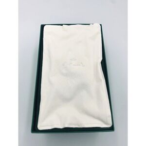 Comes nestled in a felt green protective sleeve, embossed tissue cover and original box.