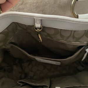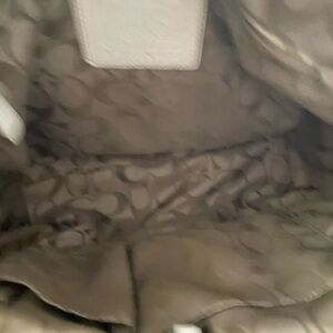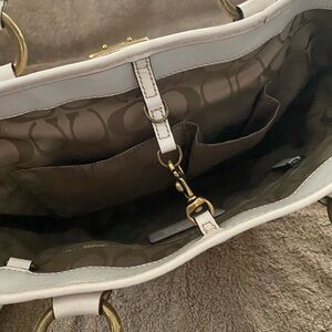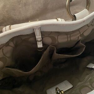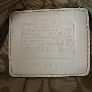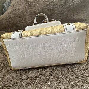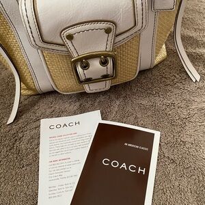 Coach Legacy White Leather Natural Tan Brown Woven Straw Rattan Raffia Handbag
