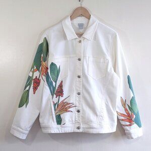 Chico's Tropical Embellished White Denim Jacket Floral Artsy 16/18 Chico 3