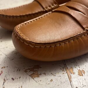 Step into style with these classic tan leather loafers. Perfect for any occasion, these flats offer both comfort and elegance.