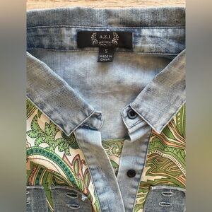 A.Z.I. New York Paisley Denim Chiffon Lattice Open Long Sleeve button Down Top S