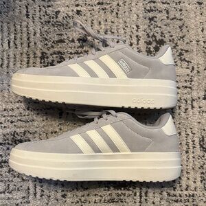 Stylish light gray platform sneakers by Adidas. Ideal for active wear. Offers great comfort. Never worn.