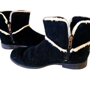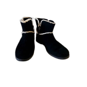 Ugg Black Suede Boots Zip Up Size 36 Lined in White Fur Adorable Style Fashion. In Good Condition.