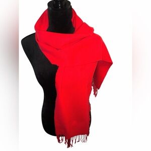100% Cashmere Red Scarf with fringe. Made in Germany. Gorgeous and incredibly soft! Length approx 65in. Width 12in. Excellent preloved condition! Smoke free and clean home! Offers welcome!