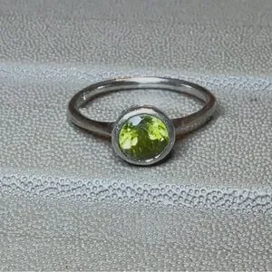 This elegant silver ring features a stunning green peridot gemstone, perfect for adding a touch of sophistication to any outfit. Size 6