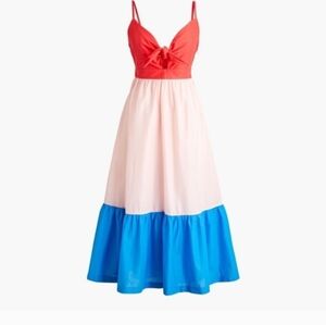 excellent condition Nwot j crew re imagined. color block, spaghetti straps cut out lined with pockets smocking in back stretches no flaws, coastal, beach, vacation, spring, summer, feminine, romantic, preppy.