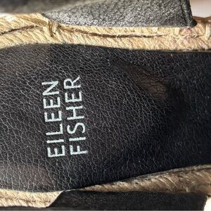 Eileen Fisher Black Leather Espadrille Wedges