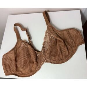 Elomi Cinnamon Tan Charley Unlined Sheer Fishnet Lace Underwire Bra Size 46DD