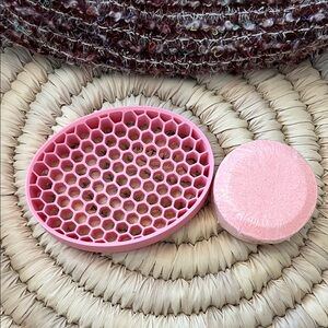 Chic textured design. Ideal for storing makeup essentials. Enhances your beauty routine. Soap dish and bath bomb