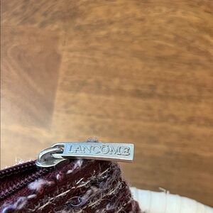 Lancome Textured Cosmetic Bag in Deep Burgundy Soap Dish Bath Bomb