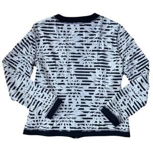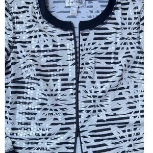 Joseph Ribkoff Full Zip Vinyl Shimmer Striped Floral Jacket Black White Size 12