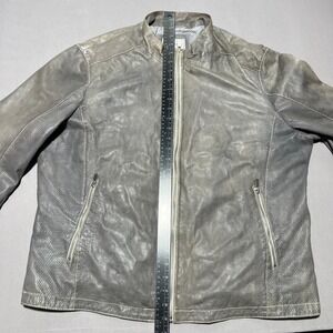 Williams & Kent Mens Gray Leather Lined Full Zip Motorcycle Jacket Plus Size XXL