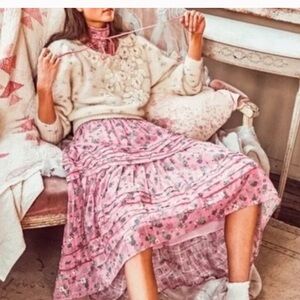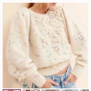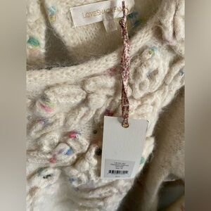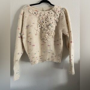 Love Shack Fancy Wool Sweater Cream Cottage Core Claudette Pullover Puff Sleeve